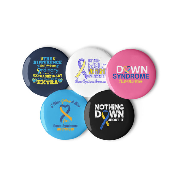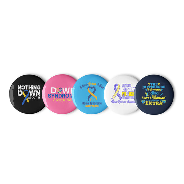 Show your support for Down Syndrome Awareness with this meaningful set of 5 pin buttons. Lightweight yet durable, these buttons are perfect for adding a powerful statement to your outfit, bag, or accessories. Each pin is designed with a glossy finish and a protective UV-resistant coating, ensuring they last while helping you raise awareness everywhere you go.