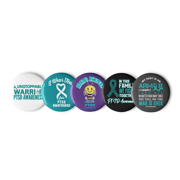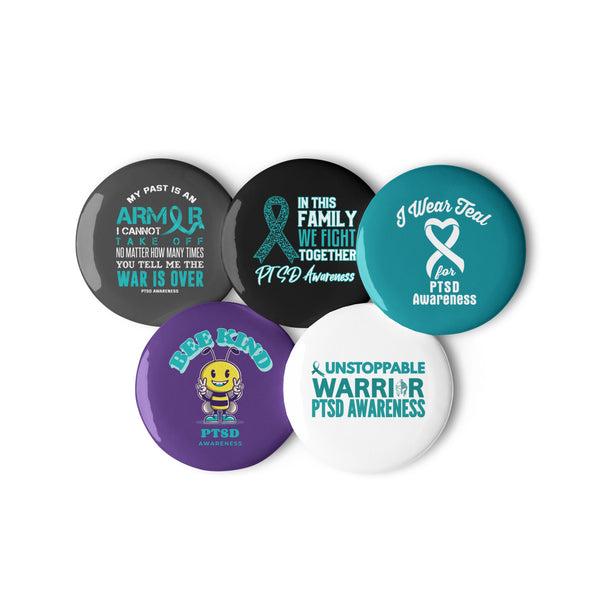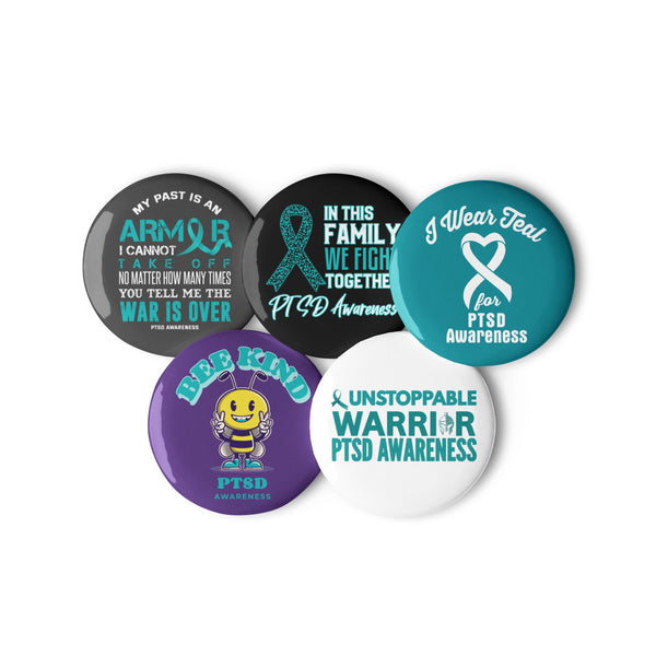 Show your support and help raise awareness for PTSD (Post-Traumatic Stress Disorder) with these high-quality pin buttons.