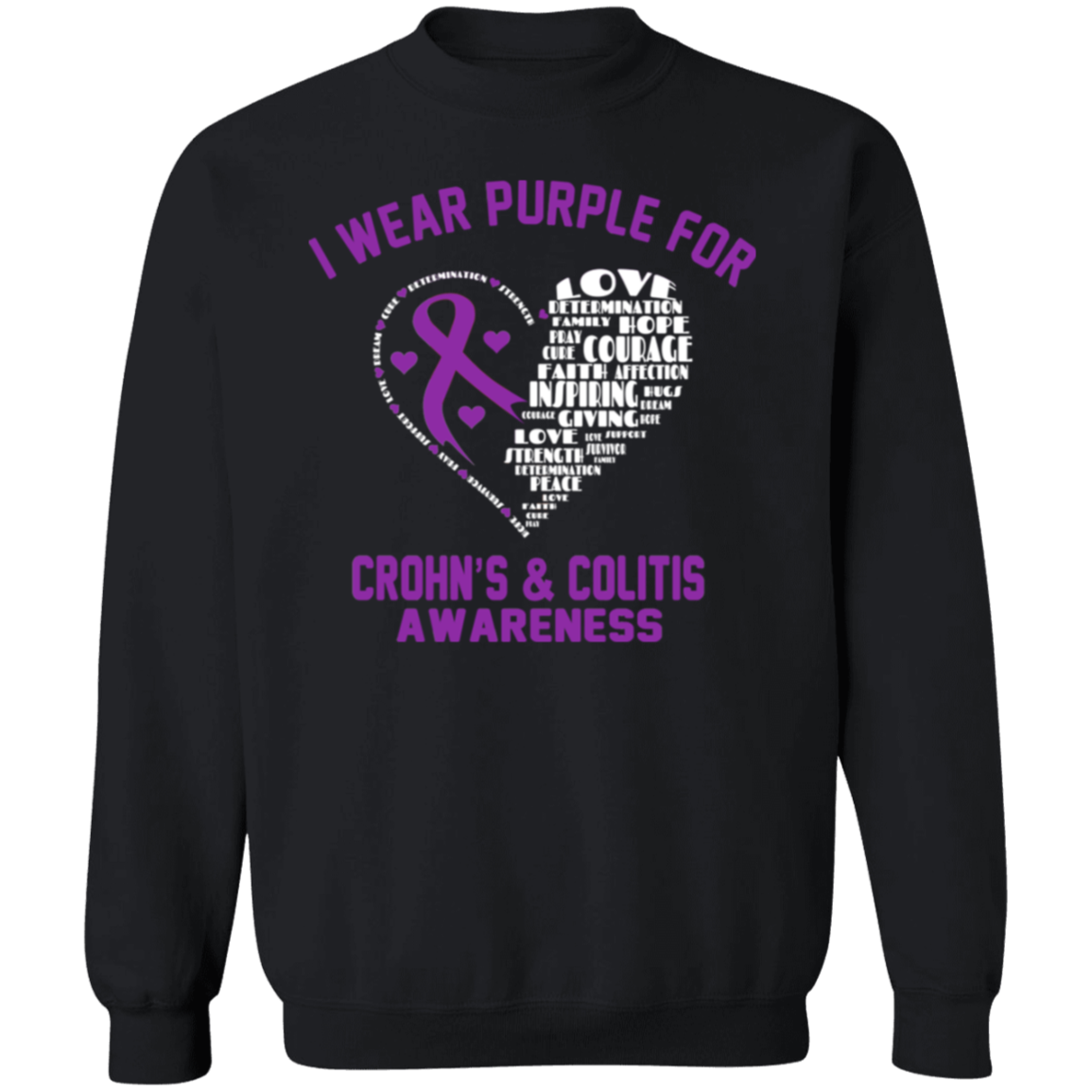 Show your support and help raise awareness for Crohn's & Colitis with our "I Wear Purple" crewneck sweatshirt. Designed for both comfort and purpose, this unisex pullover is a powerful way to stand with warriors and survivors.
