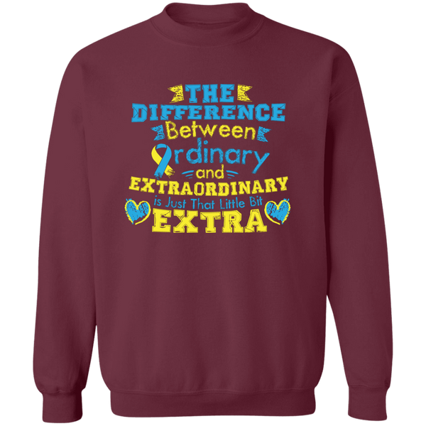 The difference between Ordinary & Extra-Ordinary Down Syndrome Awareness Crewneck Sweatshirt