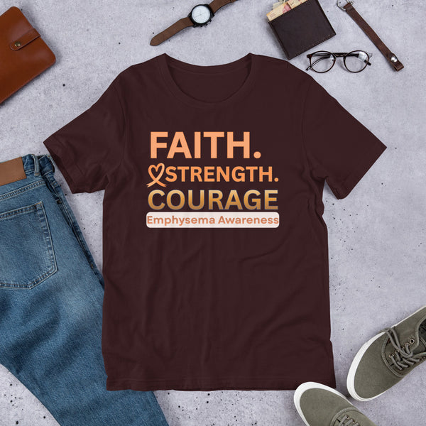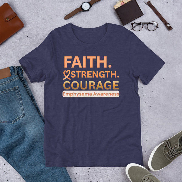 Show your support and spread hope with our Emphysema Awareness – Faith • Strength • Courage Unisex T-Shirt. Designed for comfort, meaning, and everyday wear, this awareness tee features a soft, lightweight feel with just the right amount of stretch—perfect for anyone standing strong for the Emphysema community.