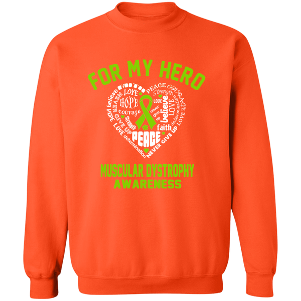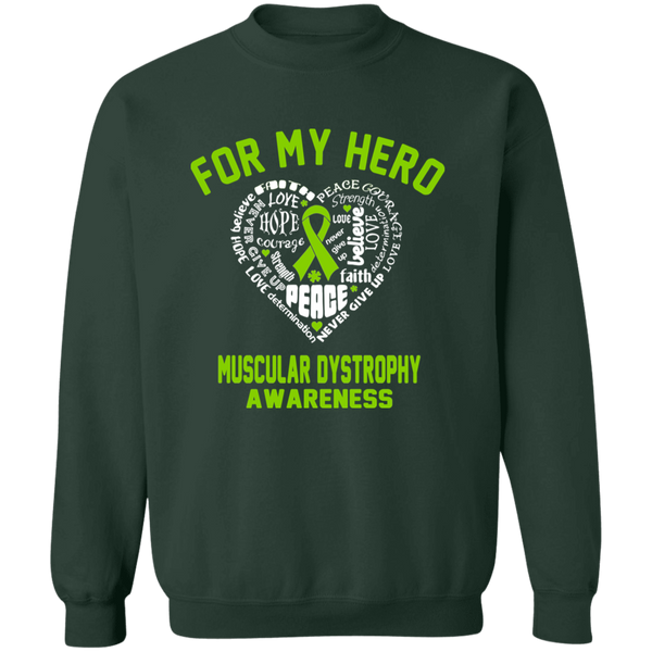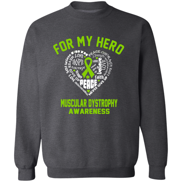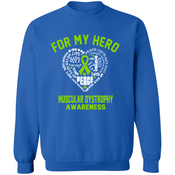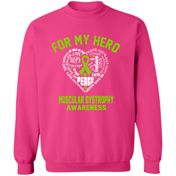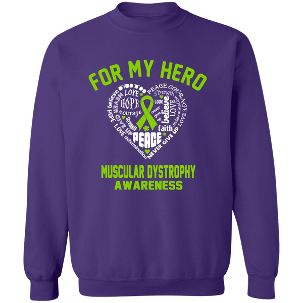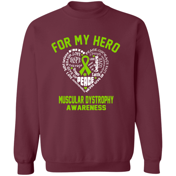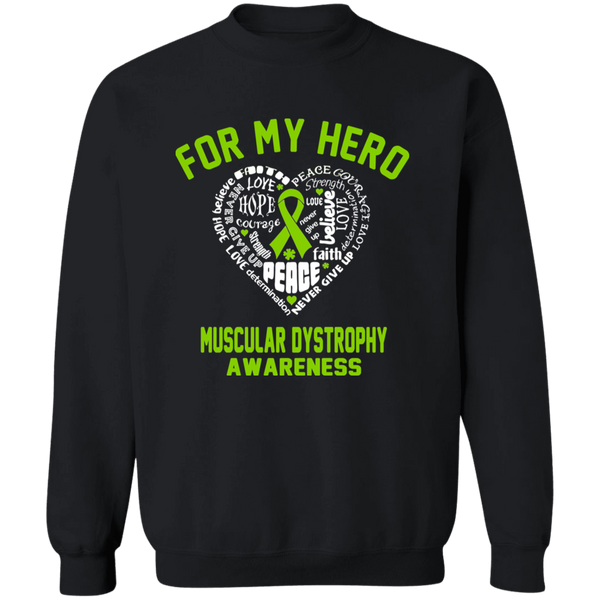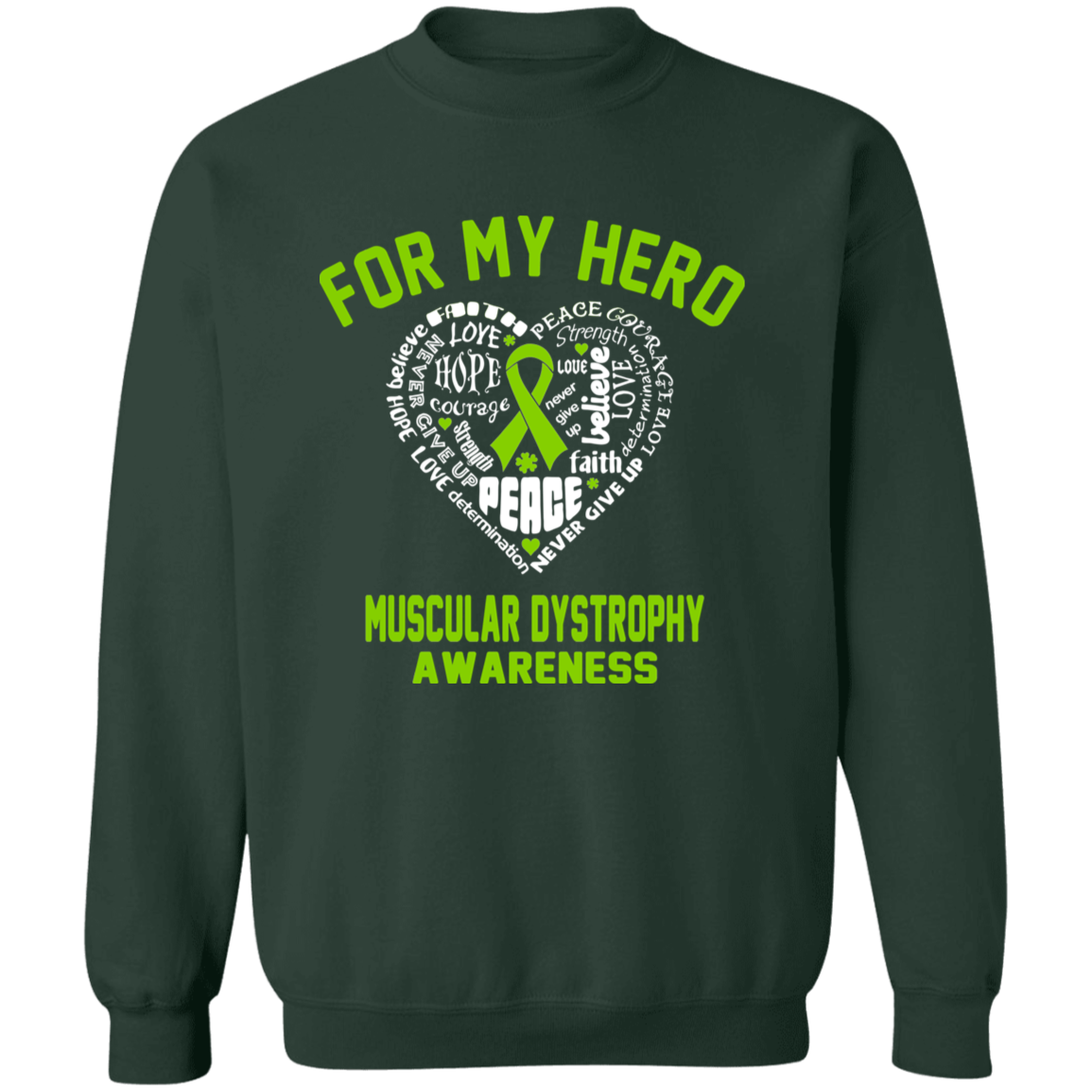 Show your support for someone strong with our “For My Hero” Muscular Dystrophy Awareness crewneck sweatshirt. Cozy, meaningful, and designed to spark conversation and raise awareness.