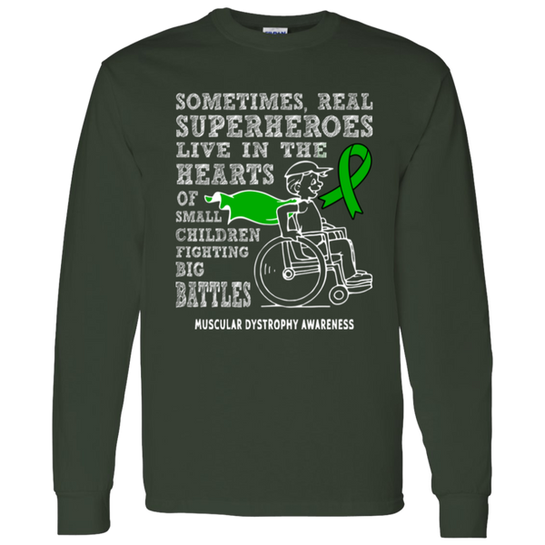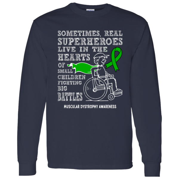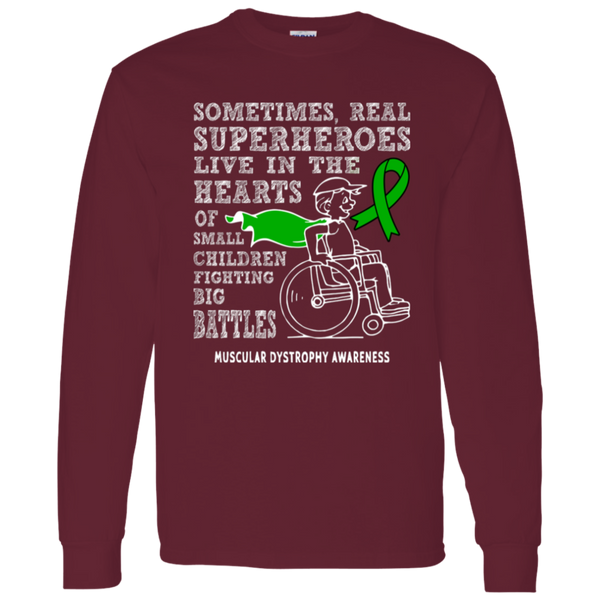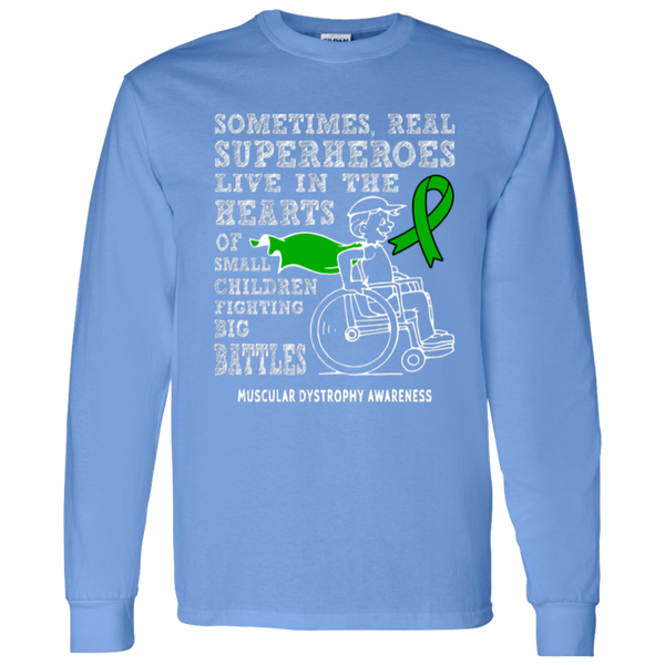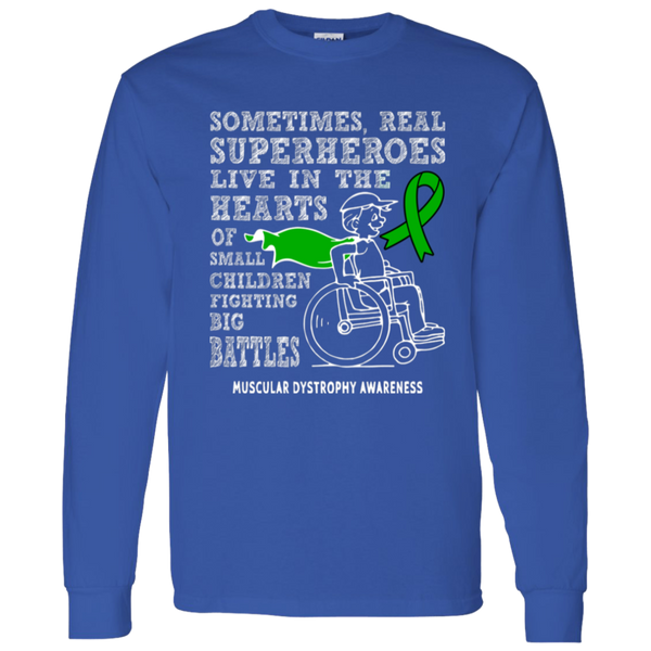 Show your support for Muscular Dystrophy Awareness with our empowering Real Superheroes long sleeve t-shirt. Designed for comfort and durability, this shirt is perfect for spreading strength, hope, and awareness at events or everyday wear.