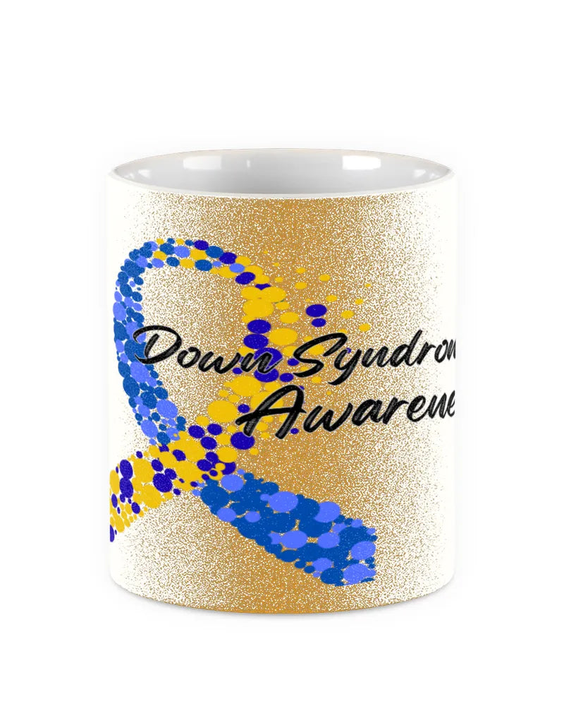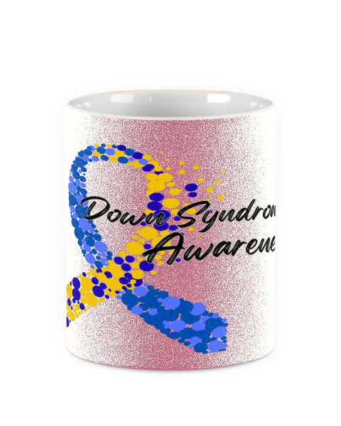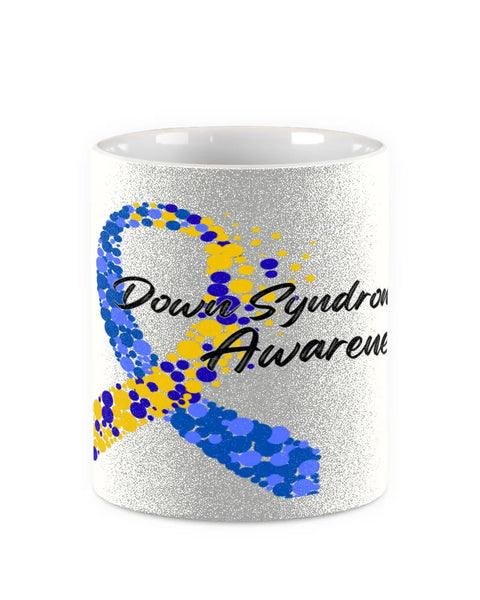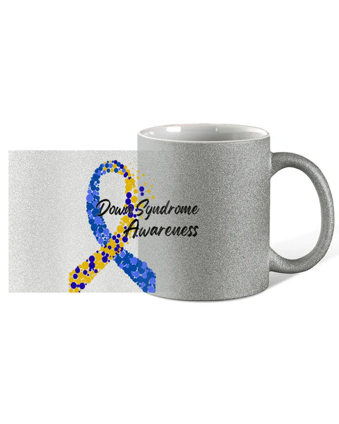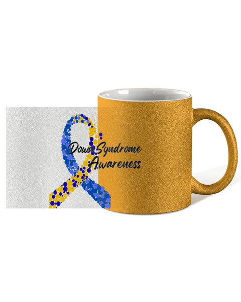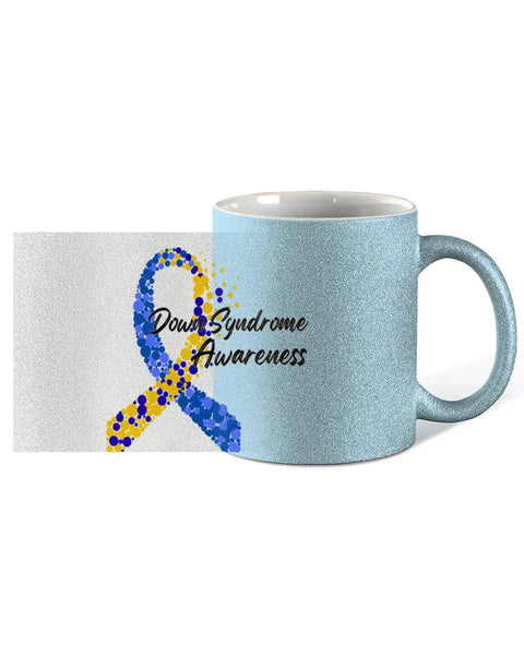 Celebrate inclusion, love, and support with this Down Syndrome Awareness Glitter Mug. This sparkling 11 oz ceramic mug features a rough glitter finish and vibrant sublimation print, making it a meaningful way to promote awareness and acceptance.